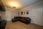 This lovely flat is situated in a quiet location of Auchtermuchty and is within walking distance to local shops, Health Centre, and local park. Accommodation comprises entrance hallway with laminate flooring. Lounge with windows to front, storage units with feature spotlights, laminate flooring, space for table and chairs if required and doorway leads through to kitchen. The kitchen has fitted wall and mounted units, gas hob, extractor fan, electric oven, sink unit and drainer. There is space for fridge freezer and plumbing for a washing machine. Tiled flooring and spotlights to ceiling. Window overlooking rear garden and doorway providing access to garden. Bedroom one is a generous sized double bedroom with mirror wardrobes and ample room for free standing furniture, windows to front, laminate flooring and press-cupboard. Bedroom two is the second double bedroom with laminate flooring and a window to rear. Three-piece bathroom includes bath, WC, wash hand basin and electric shower over bath with shower screen. Tiled flooring and heated ladder towel radiator. Cloaks/storage area.