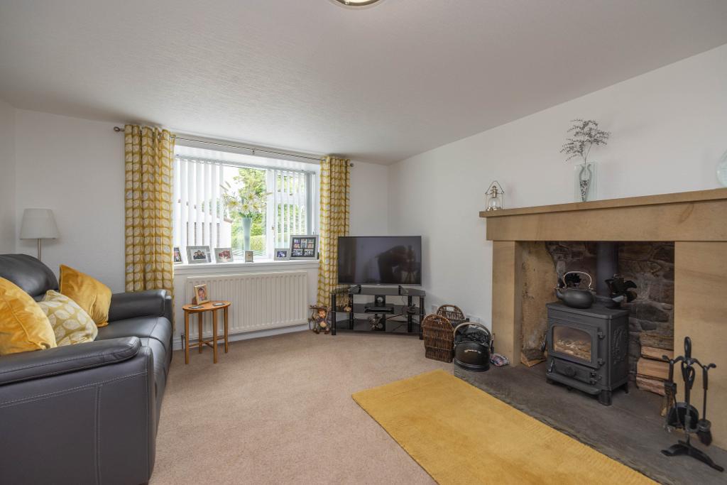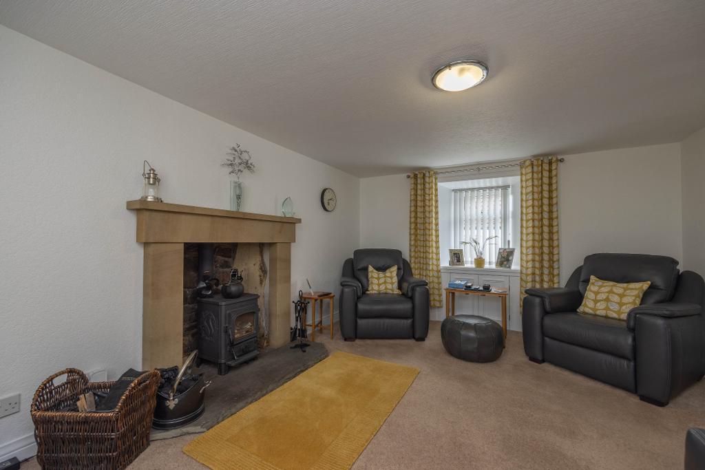 Charming well proportioned lounge with feature multi fuel stove, attractive hearth and mantle. Windows with deep window sills to front and rear. Cupboard housing the electric meter. Fitted carpet.