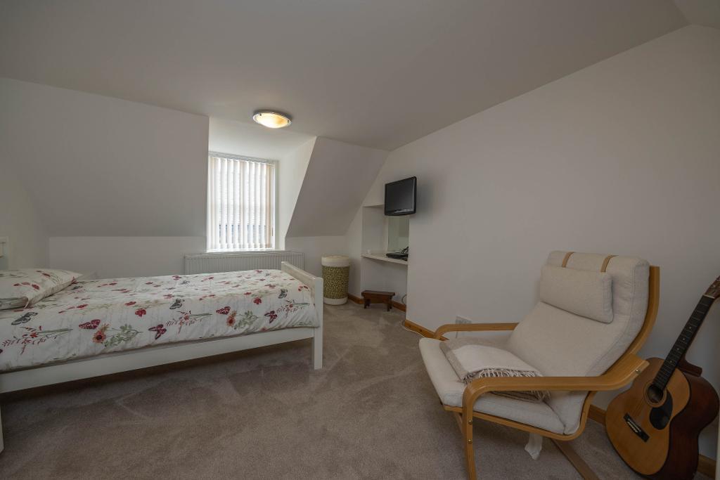 Bedroom four is an ideal single bedroom, is presently being utilised as a home office. Laminate flooring. Velux window. Fitted cupboards with shelving. Further cupboard housing water tank.