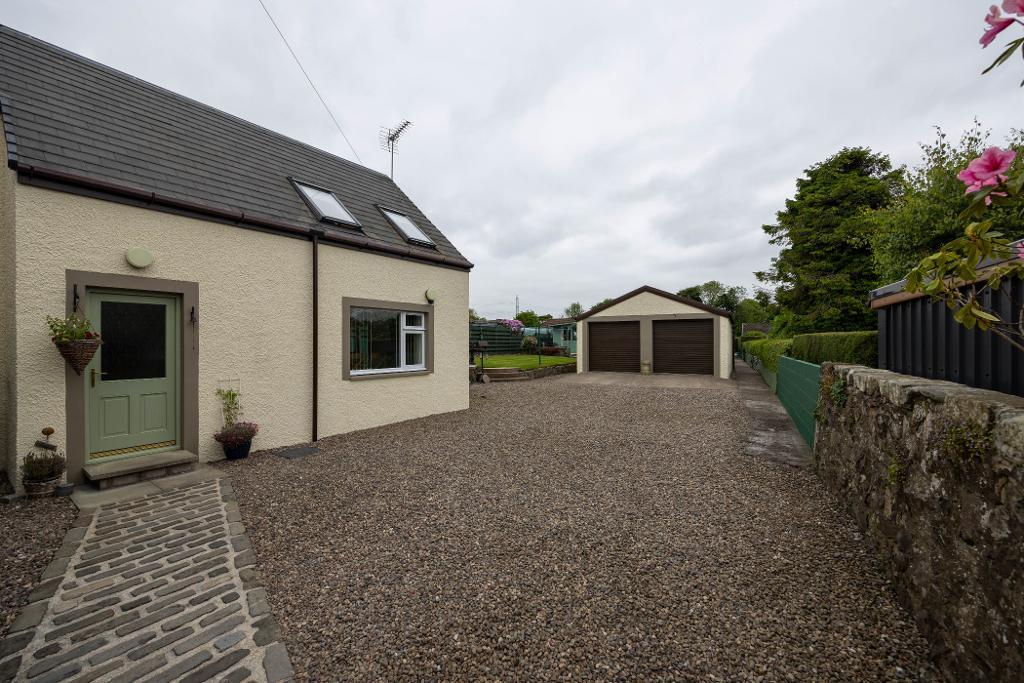 Externally you will find a generous sized rear garden which is beautifully laid out, with patio areas offering ideal spots to dine or sit and relax. Steps lead to a lawn/drying area. Pathway to summerhouse, log store, a gate providing access into a vegetable and fruit garden area. Greenhouse. Three garden sheds. Double garage with store room, power, light and electric door. Parking area, cobbled area leading to side entrance door and double gates to front.
