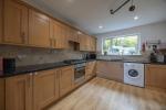 Well-proportioned kitchen area, which is fitted with wall and floor mounted units. Ample worktop surfaces for meal preparation. Five ring gas hob, electric oven and extractor above. Sink and drainer positioned in front of window overlooking the rear garden and towards nearby woodland. Splashback tiling. Space and plumbing for washing machine. Door opens to the rear hall.