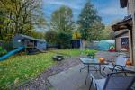 The rear garden is mainly laid to lawn with patio and chipped drying areas. Pathway leading to gate opening onto woodland. Garden room with power and light previously utilised as a work from home area. Childs playhouse. External water, tap and lighting. External store with power and light. Garden shed.