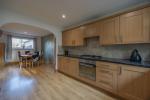 Spacious dining hall with under floor heating and ample space for a dining table and chairs. Window offering natural light to dining area. Open plan archway connects the kitchen area while maintaining separate areas. Doors open to lounge, study/bedroom four and rear hall. Laminate fitted flooring which continues through to the kitchen and rear hall.