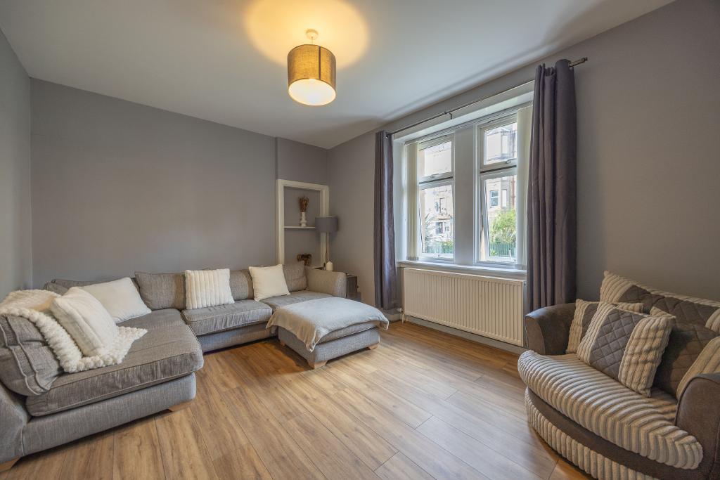 Access is via a communal close, with stairs leading to the upper apartments and to the rear entrance door. No 46b entrance door is on the ground floor, on your right handside.