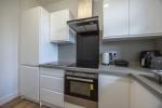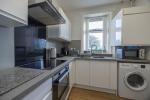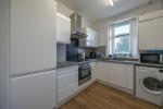 Modern fitted kitchen with wall and floor mounted units. Electric hob, oven and extractor above. Ample work top surfaces. Splashback panelling. Sink and drainer positioned in front of window overlooking rear shared drying area. Space and plumbing for washing machine. Integrated fridge freezer. Gas central heating boiler located within the kitchen.