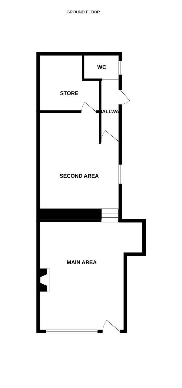 On entering the property, you gain access into a generous sized main area with a large single glazed window formation to front. Feature fireplace on an exposed stone wall. Storage alcove. Steps lead up to a second area.