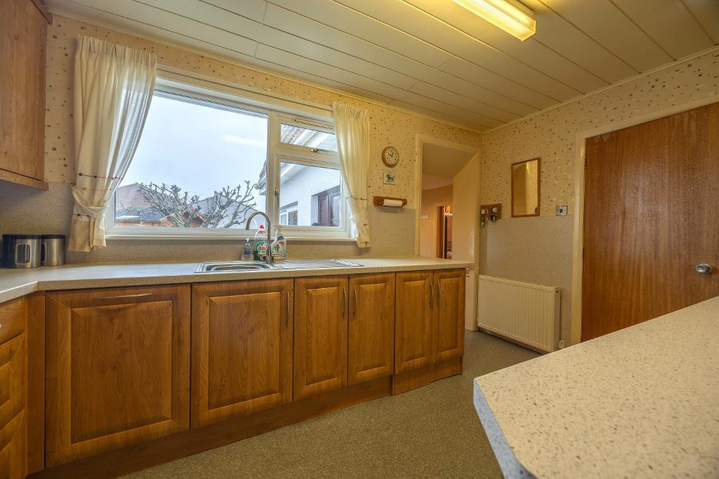 Fitted kitchen includes wall and floor mounted units. Ample worktop surfaces with matching splash back. Sink and drainer positioned in front of window overlooking rear garden. Space and plumbing for washing machine. Dishwasher and free-standing electric cooker with extractor above included in sale. Cupboard houses the boiler and electric meter, as well as offering storage. Vinyl flooring.