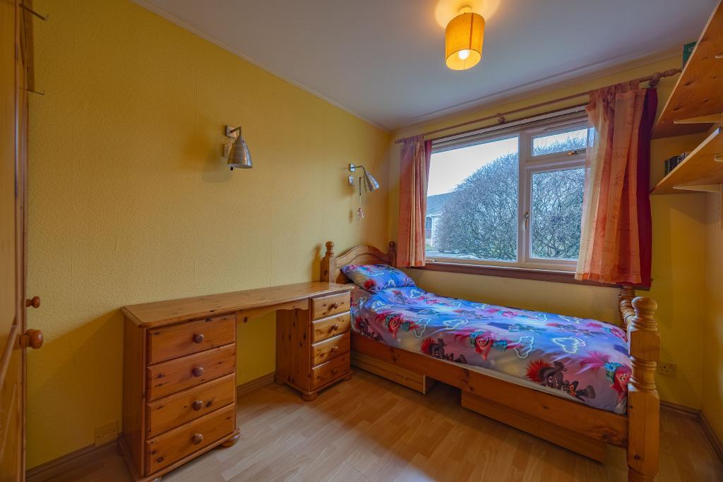 Bedroom four is located to the front of the property and is being utilised as a single bedroom. However, there is ample space for a double bed and free-standing furniture if this is your preference. Laminate flooring. Window with partial views over rooftops towards nearby farmland. Fitted shelving and wall light.