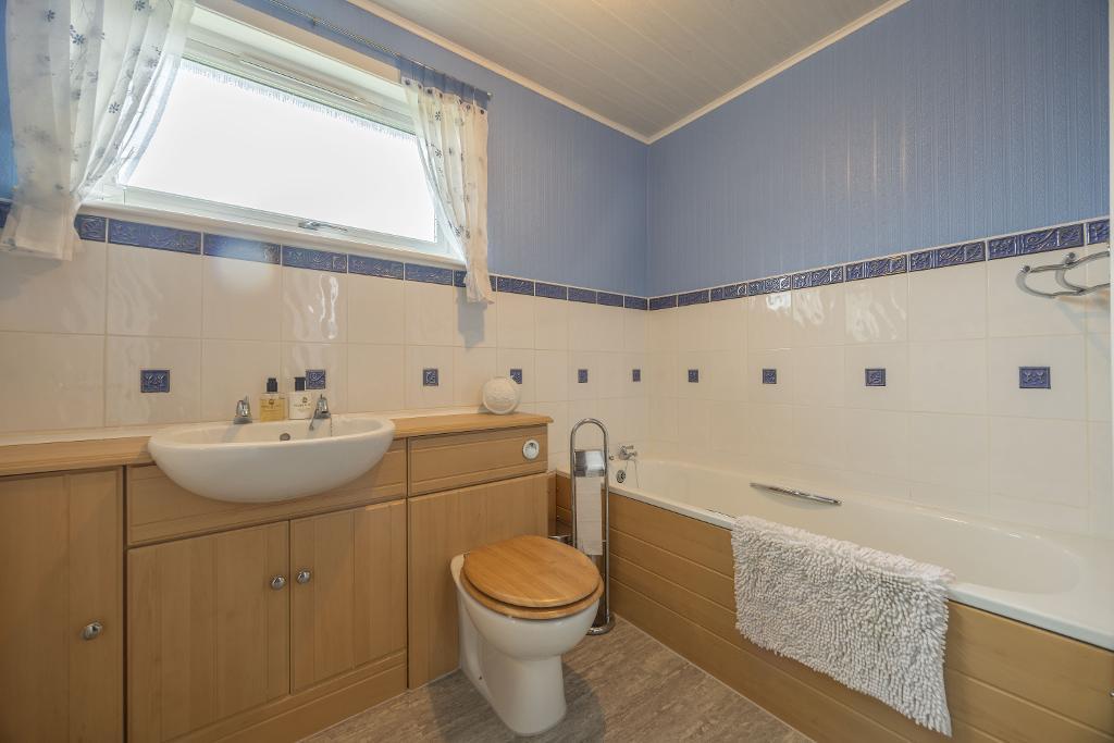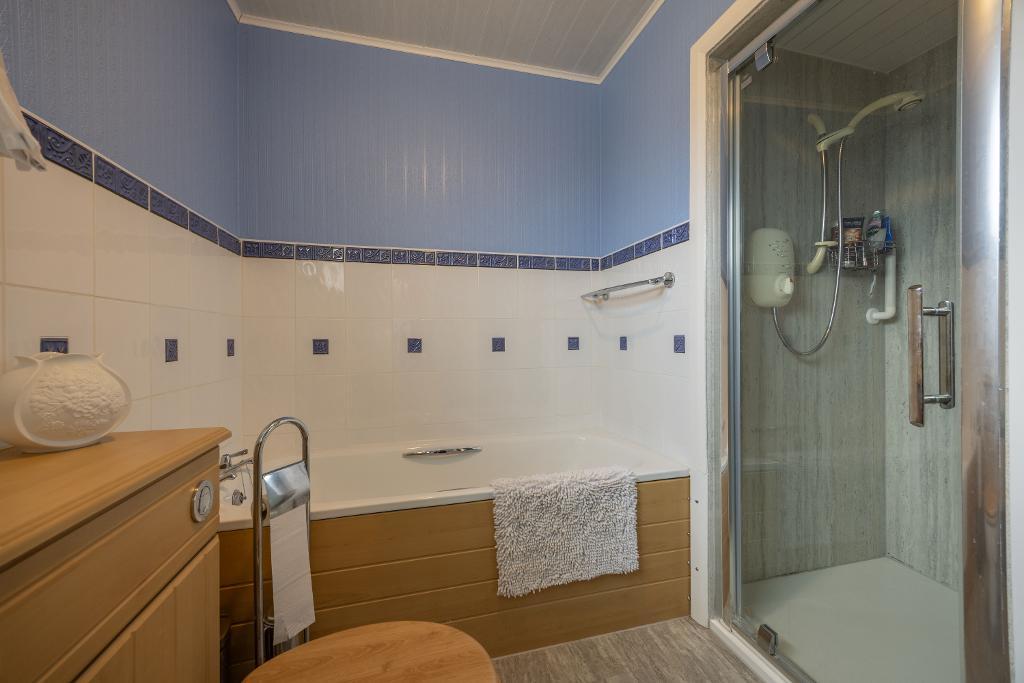 The family bath/shower room comprises of a combination w.c and basin vanity unit, bath and separate shower enclosure with an electric shower. The walls are partially tiled and there is wet wall panelling within the shower cubicle. Vinyl flooring. Window offers natural light and ventilation.