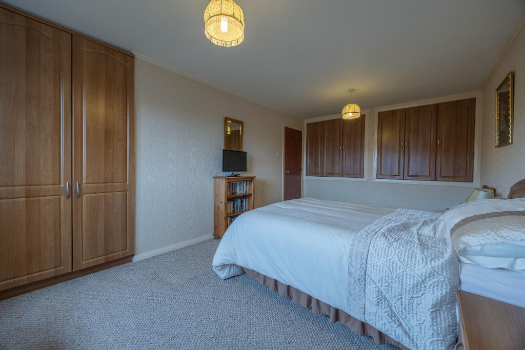 Generous master bedroom offers space for a super king size bed and free-standing furniture. Within the bedroom there is an abundance of storage on offer with fitted wardrobes and cupboards. Hatch to loft. Window overlooking the rear garden. Fitted carpet.