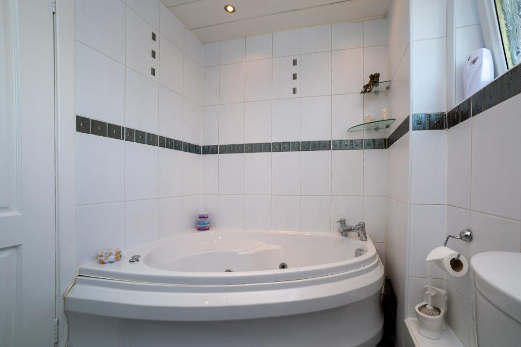 On the upper floor level, you will find a hallway with storage cupboard and hatch with ladder providing access to a partial floored attic. Four-piece bathroom which includes a jacuzzi bath, shower cubicle with electric shower (with jet sprays), wc and wash hand basin with vanity unit. The bathroom has towel radiator and spotlighting to ceiling. Two double bedrooms both with fitted overhead storage unit wardrobes, and a single bedroom/boxroom/nursery with triple mirror wardrobes. The single bedroom/boxroom can be utilised as nursery or study if required.