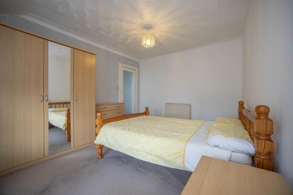 Bedroom two is located to the front of the property with a double-glazed window providing views over Glasgow and towards Eaglesham in the distance. Space for double bed and free-standing furniture if required. Fitted carpet.