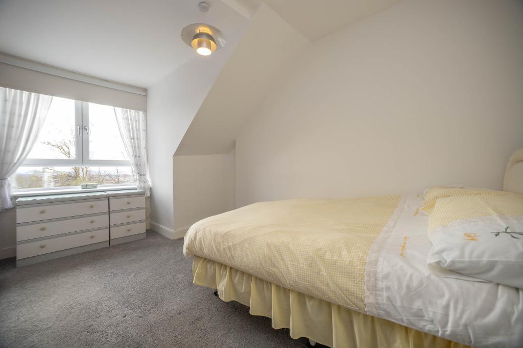 Bedroom three is an ideal single bedroom or it can be utilised as a study/home office if required. A double-glazed window provides views over Glasgow and towards Eaglesham in the distance. Carpet to floor.