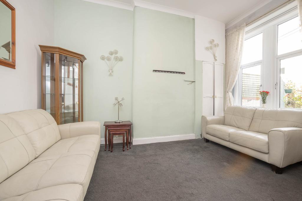 Access to the property is gained via gate into a well-kept enclosed front garden, with steps leading up to the entrance door of this family home.