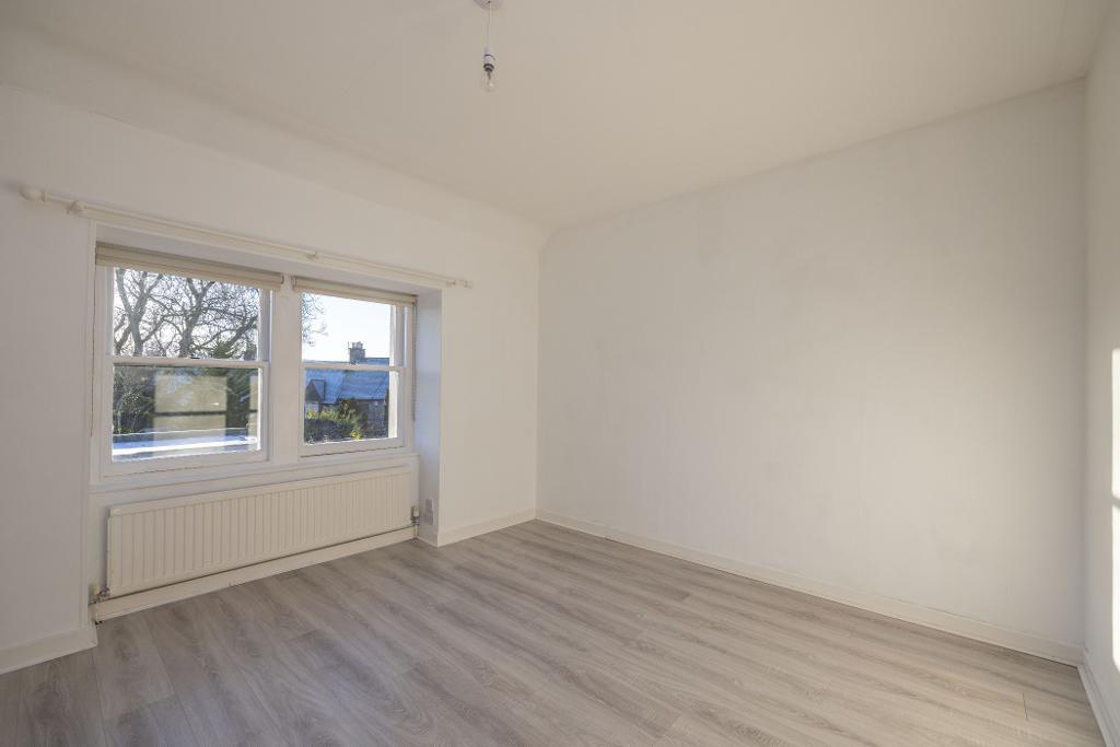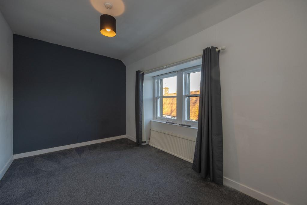 Bedroom two is located to the rear of the property with sash & case windows offering views towards the East & West Lomond Hills. Space for double bed and freestanding furniture. Laminate fitted flooring. Free standing wardrobe included in sale.