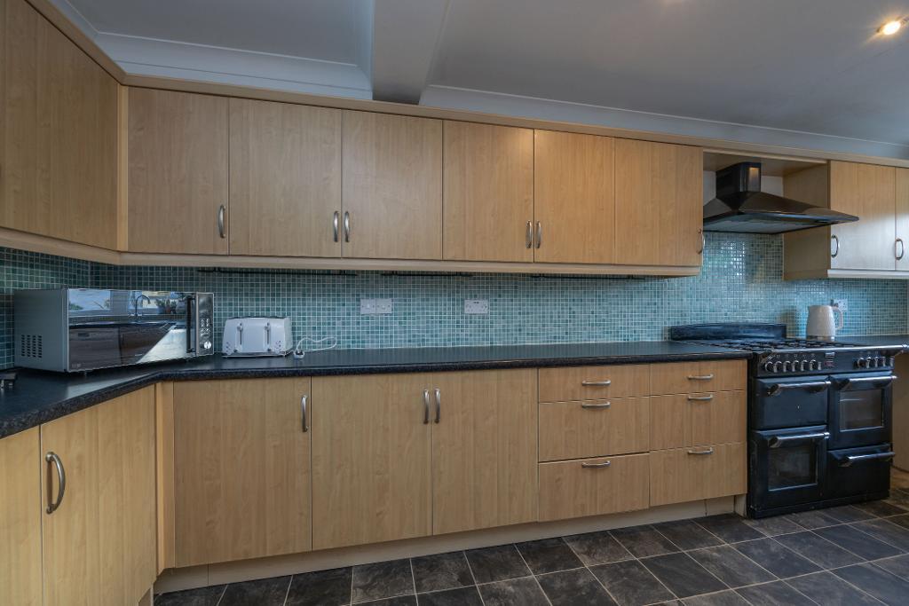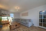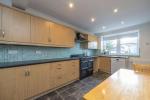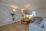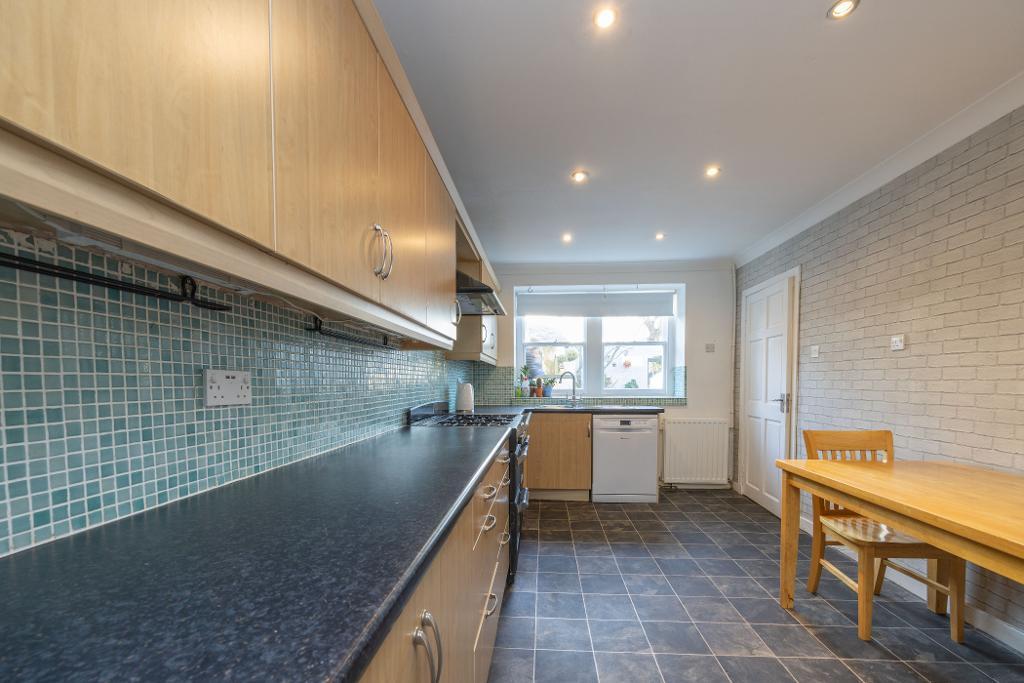 Generous sized lounge with space for dining table and chairs. Sash & case window to front with deep windowsill and cupboard below. Two further sash & case windows overlook the rear garden as well as allowing natural light into the lounge area. Feature wallpaper to one wall.