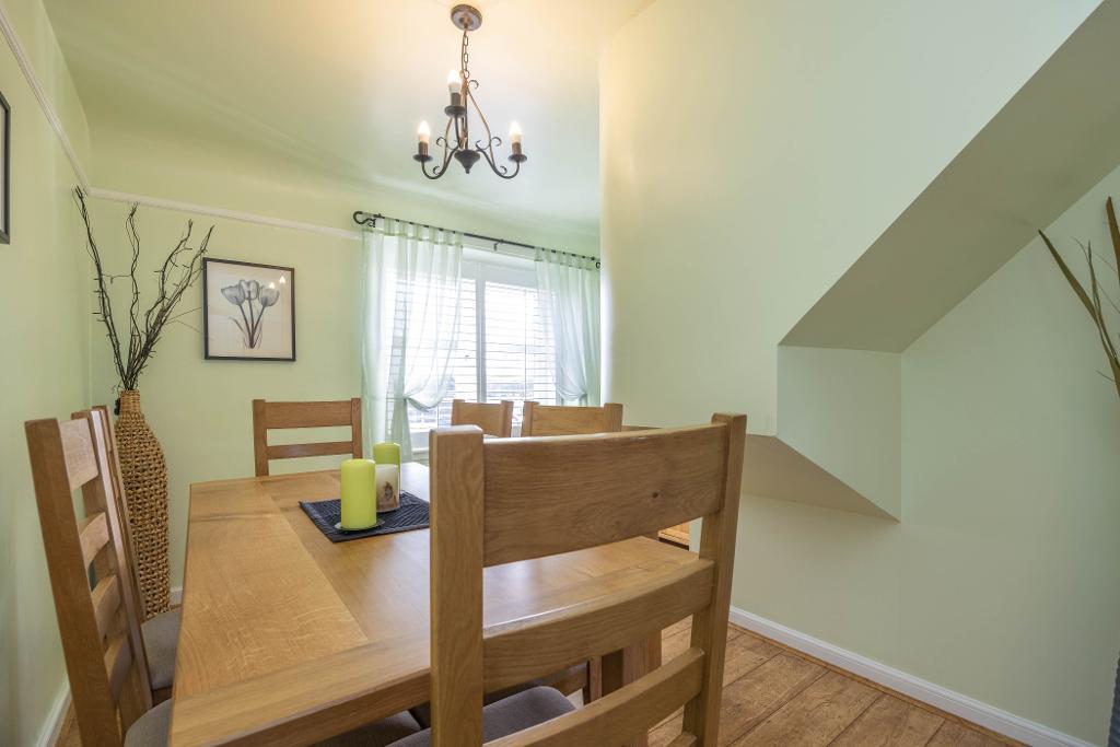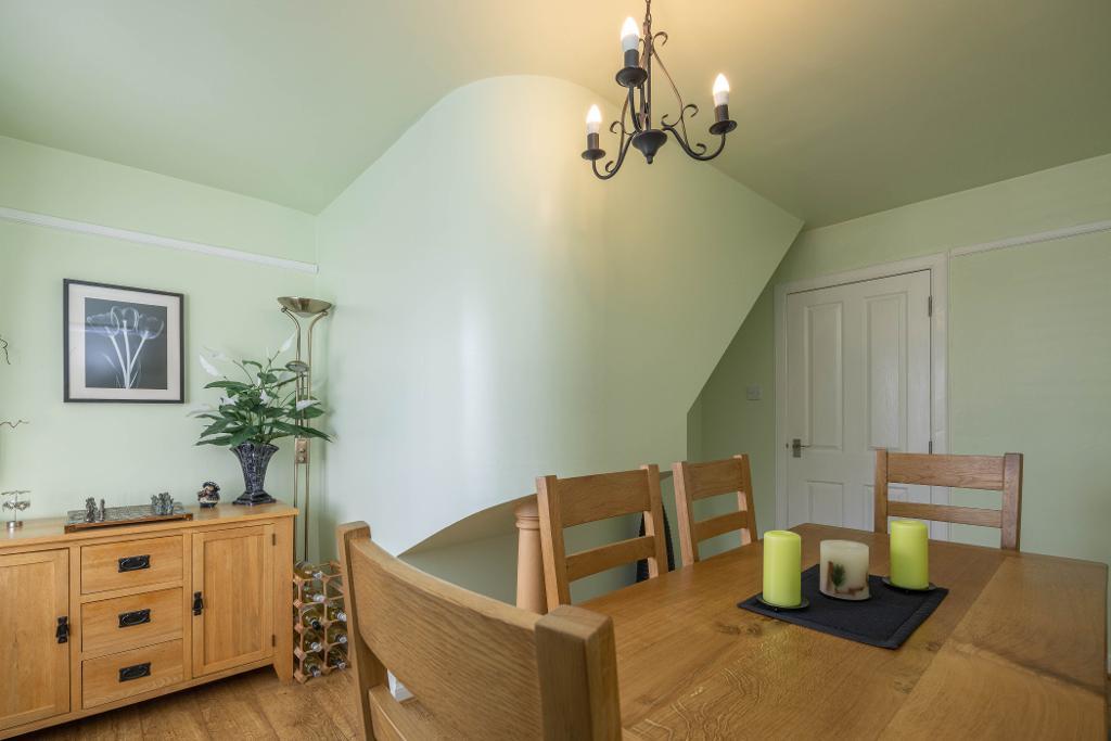 Bedroom Four/Dining Room is an ideal single bedroom, however it is presently being utilised as a dining room. Windows offering partial views over nearby farmland towards the East Lomond. Fitted window shutters.