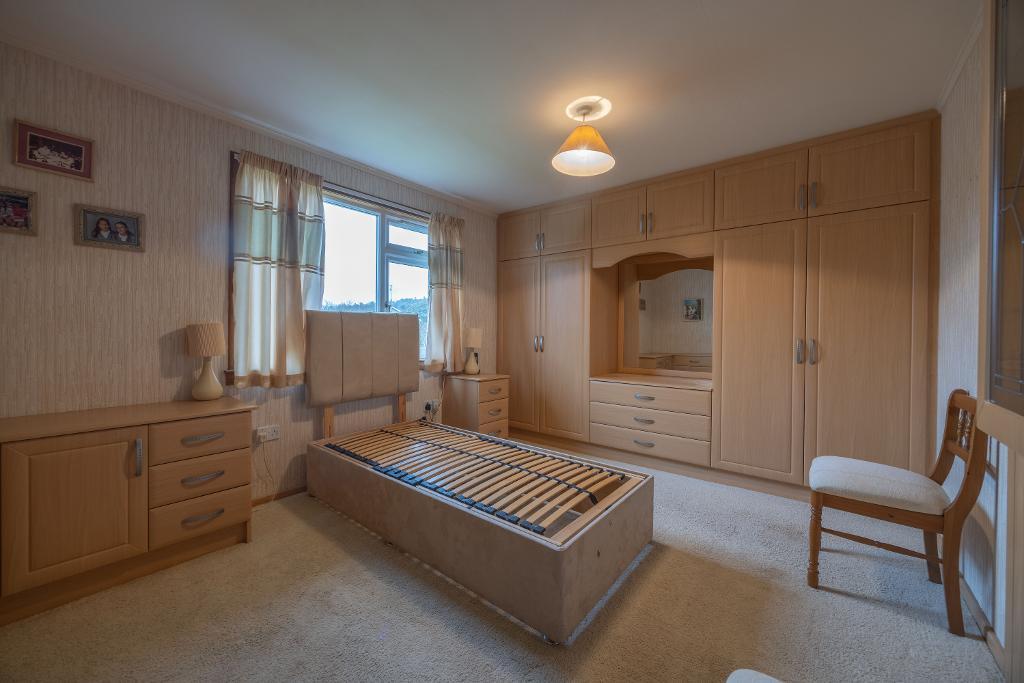 Well-proportioned bedroom two offering space for a double bed. Within the bedroom there are fitted wardrobes with dressing table, separate fitted drawers and bedside cabinet. Cupboard offering further storage for clothing. Carpet to floor. Window overlooking front garden.