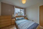 Generous master bedroom offers space for a super king size bed and free-standing furniture. Within the bedroom there is an abundance of storage on offer with fitted wardrobes and cupboards. Hatch to loft. Window overlooking the rear garden. Fitted carpet.